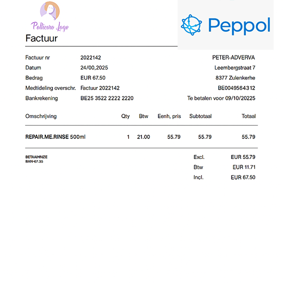maar ook automatisch verstuurd via het Peppol-netwerk — het officiële Europese platform voor elektronische facturatie.