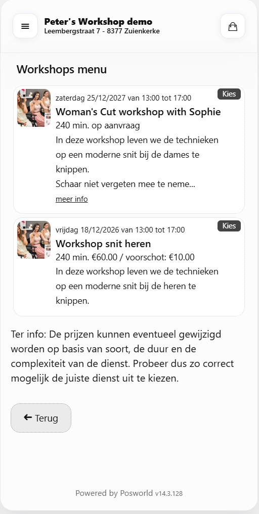 Voorbeeld online reservatie workshop
