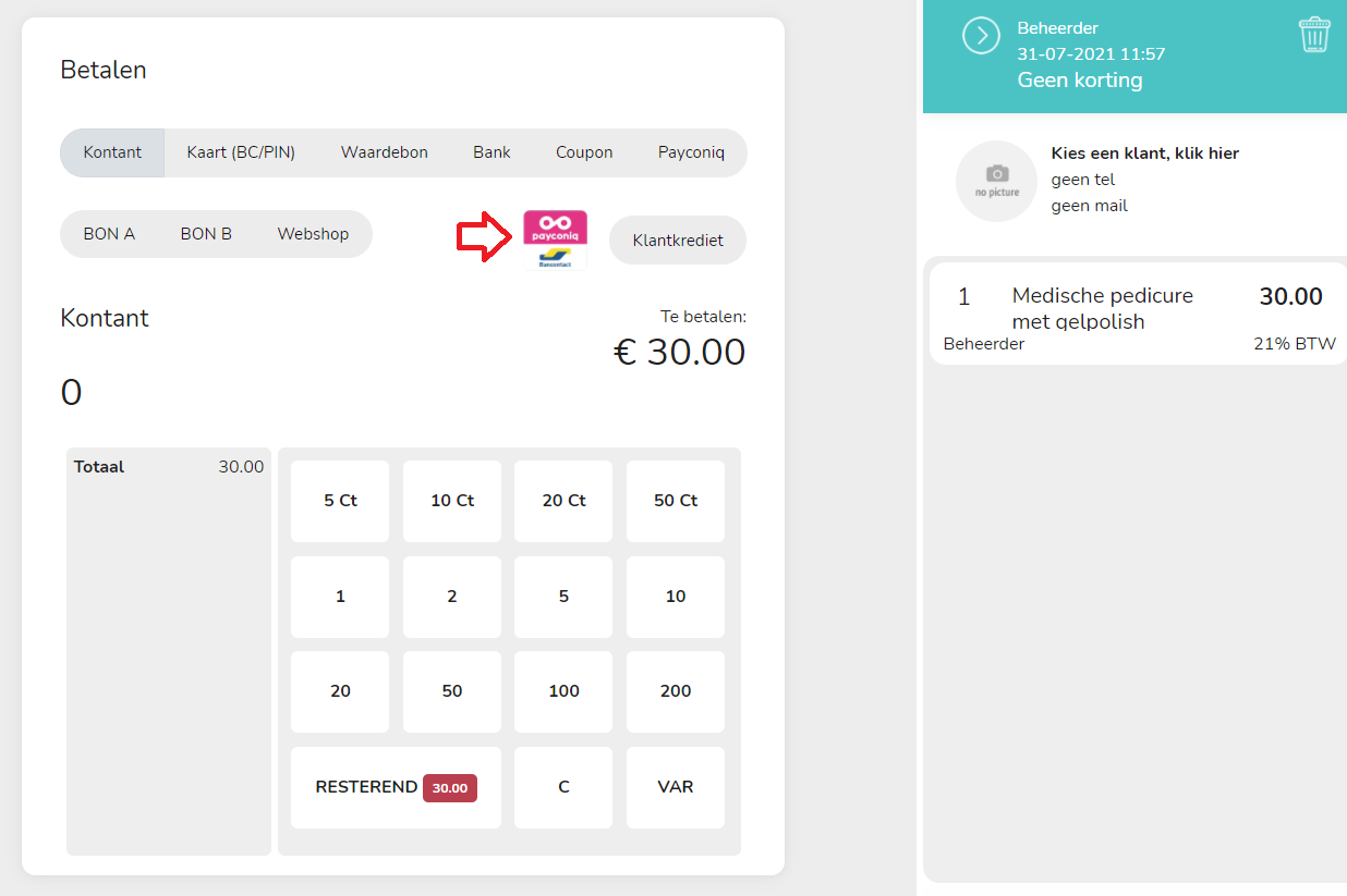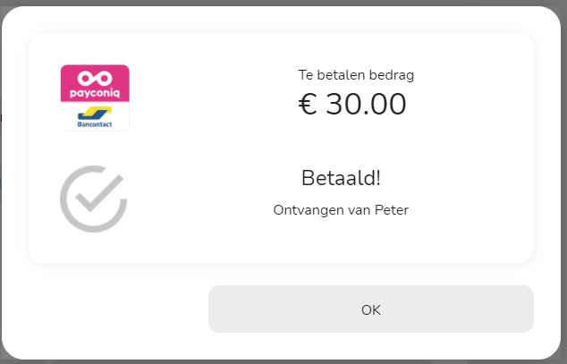 De kassamodule zend het te betalen bedrag door naar Payconiq met controle op betaalstatus.