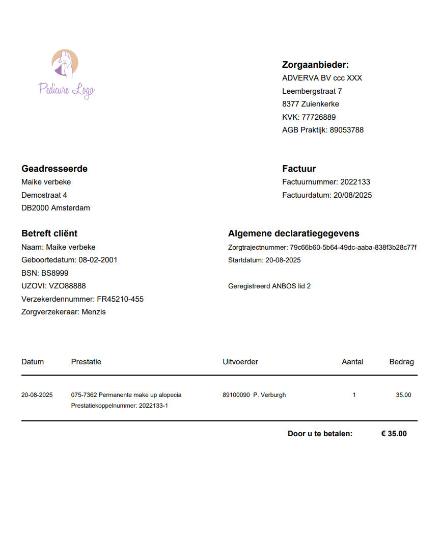 Hierop dienen enkele extra kenmerken op de factuur voorzien te worden zoals BSN, Zorgtrajectnummer, ..